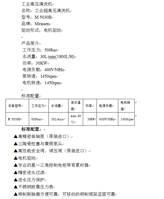 產(chǎn)品名稱:工業(yè)級超高壓清洗機M5030B